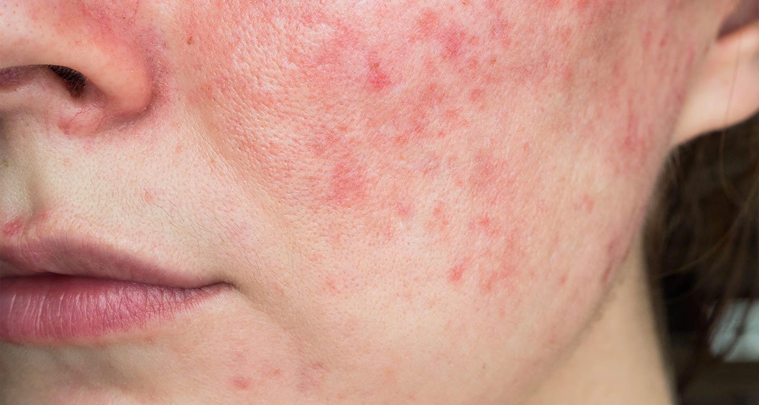 Rosacea: This is more than a cosmetic issue—it’s a chronic condition that cycles through flare-ups and remissions. Notice any of these symptoms? Persistent redness and visible blood vessels around the central face. Inflammatory acne-like bumps. Burning or itching sensation.